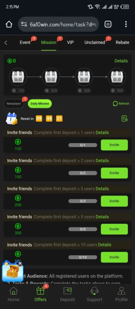 Referral and bonus options were visible but not aggressive. This made the experience calmer. Overall my experience was balanced. It didn’t feel overwhelming or misleading. Like any casino style game it requires self control. But in terms of usability it felt well designed and stable