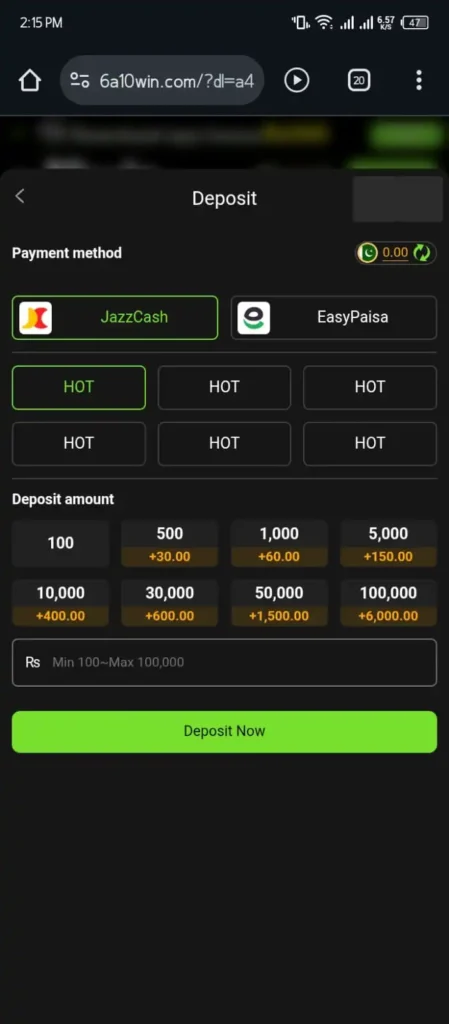 Deposit Process of 10Win App
