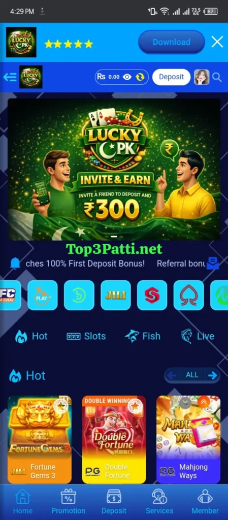 Lucky Pk also includes earning options through wins, bonuses, and referral systems. Users can usually manage deposits and withdrawals using EasyPaisa and JazzCash, which makes it more practical locally. Toward the end players often compare it with similar apps like 33D Game and 799 Pak App which are also popular among Pakistani users.