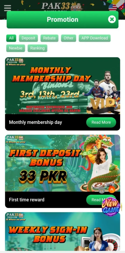 - Welcome Bonus Extra balance after Pak33 Register helpful for beginners.