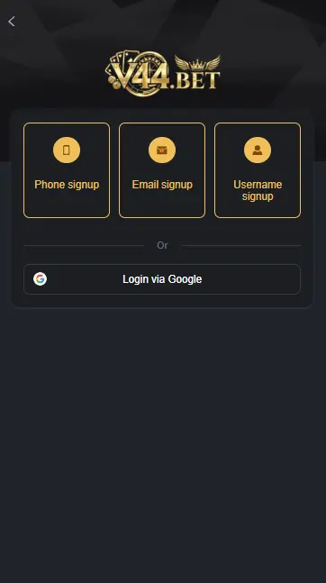 To create a new account open the V44 and click on the Register option. Enter your mobile phone number, create a strong passwords that you can always remember and then complete the verification process. Once verified your account will be ready to use all the games.