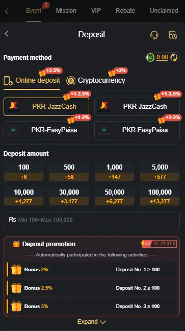 The app supports popular Pakistani payment methods making deposits and withdrawals simple. Users can complete transactions securely using familiar local options.